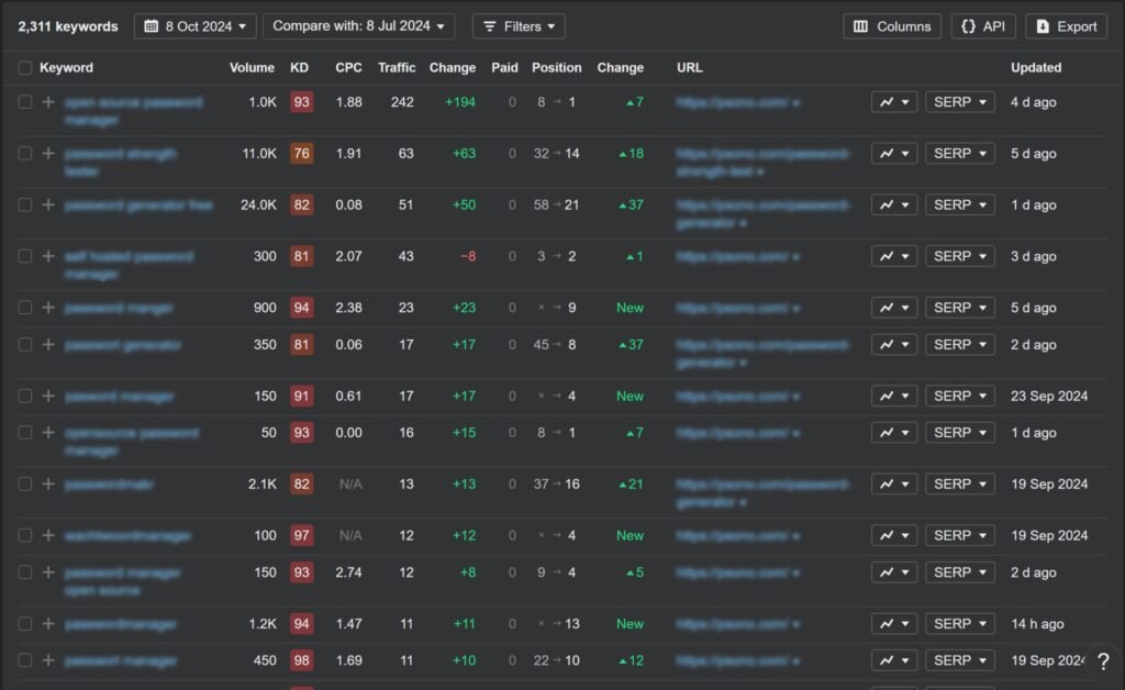 The goal was to rank on Top 5 with 3-4 target keywords that had high keyword difficulty, but at the same time high volume and monthly organic traffic.